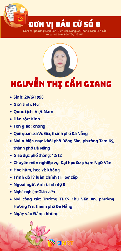 Trước đó, Hội nghị hiệp thương lần thứ ba do Ủy ban MTTQ Việt Nam thành phố tổ chức đã thống nhất lập danh sách 18 người đủ tiêu chuẩn ứng cử đại biểu Quốc hội khóa XVI (chưa kể 6 ứng cử viên do Trung ương giới thiệu) đơn vị thành phố Đà Nẵng; 125 người ứng cử đại biểu HĐND thành phố khóa XI và 3.121 người ứng cử đại biểu HĐND cấp xã nhiệm kỳ 2026 - 2031. Trong đó, Liên hiệp các Hội Văn học - Nghệ thuật thành phố Đà Nẵng có 2 văn nghệ sĩ tiêu biểu đại diện tham gia ứng cử đại biểu HĐND thành phố khóa XI, nhiệm kỳ 2026 - 2031 và thuộc đơn vị bầu cử số 8 là đồng chí Nguyễn Nho Khiêm - Chủ tịch Liên hiệp các Hội Văn học - Nghệ thuật thành phố Đà Nẵng và đồng chí Nguyễn Thị Cẩm Giang - Phó Chủ tịch Hội Nhà Văn thành phố Đà Nẵng.