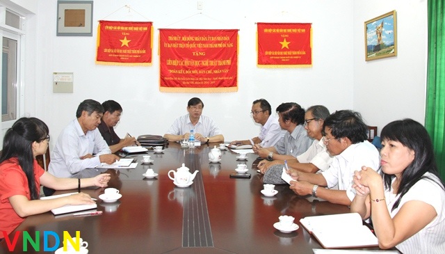 Nhà nghiên cứu Bùi Văn Tiếng, Bí thư Đảng đoàn, Chủ tịch Liên hiệp các Hội Văn học - Nghệ thuật thành phố chủ trì cuộc họp.