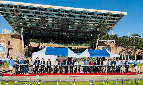 Các đại biểu cắt băng khai mạc tại Triển lãm Mỹ thuật, Nhiếp ảnh, Kiến trúc, Văn học tại Sân khấu âm nhạc ngoài trời Kolon, thành phố Daegu, Hàn Quốc.