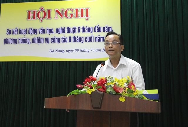 Thay mặt Ban Thường vụ Liên hiệp Hội, nhà thơ Nguyễn Nho Khiêm - Phó Chủ tịch Liên hiệp Hội báo cáo tình hình hoạt động 6 tháng đầu năm, triển khai một số nhiệm vụ trọng tâm của 6 tháng cuối năm.