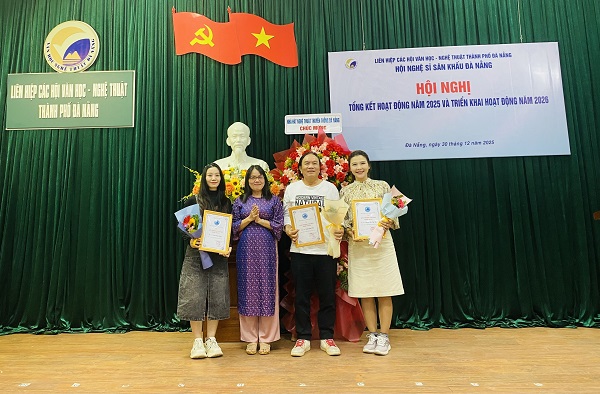 Hội nghị cũng đã biểu dương, khen thưởng các hội viên có thành tích tiêu biểu trong năm 2025, ghi nhận những đóng góp tích cực của cá nhân trong công tác sáng tác, dàn dựng, biểu diễn và truyền dạy nghệ thuật sân khấu. Đây không chỉ là sự động viên kịp thời đối với đội ngũ nghệ sĩ mà còn thể hiện sự trân trọng của Hội đối với những nỗ lực bền bỉ, tâm huyết của hội viên, góp phần nâng cao chất lượng hoạt động sân khấu và đời sống văn hóa nghệ thuật của thành phố Đà Nẵng.