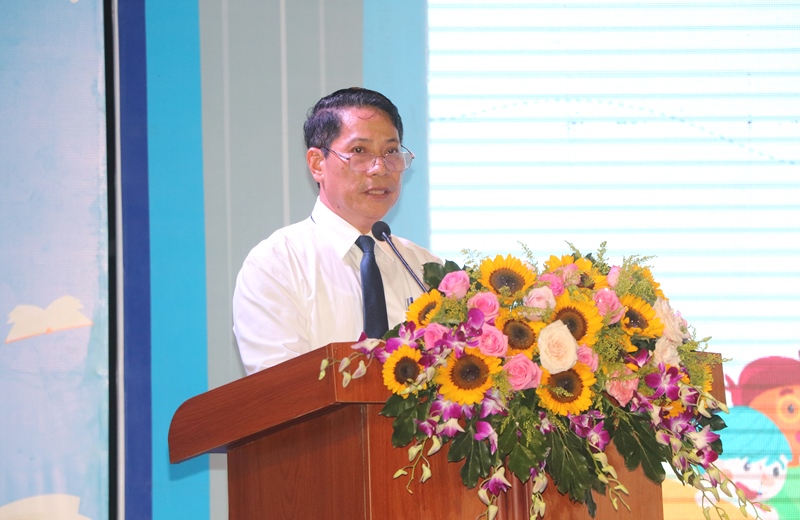 Ông Huỳnh Văn Hùng - Phó Chủ tịch quận Sơn Trà phát biểu khai mạc Hội sách.