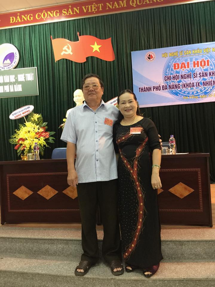 Vợ chồng NSND Nguyễn Thị Thu Nhân và Cao Đình Liên (Đạo diễn Đoàn Tuồng Nguyễn Hiển Dĩnh - Đà Nẵng) chụp ảnh kỷ niệm tại Đại hội Chi hội Sân khấu Việt Nam tại Đà Nẵng khóa IX