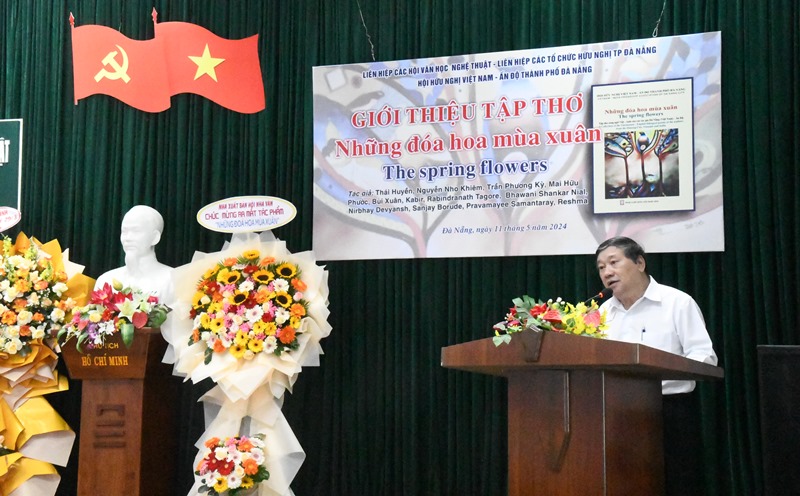 Nhà thơ Nguyễn Nho Khiêm Phó Chủ tịch thường trực Liên hiệp các Hội Văn học Nghệ thuật thành phố, Chủ tịch Hội Hữu nghị Việt Nam - Ấn Độ thành phố Đà Nẵng phát biểu giới thiệu tập thơ.