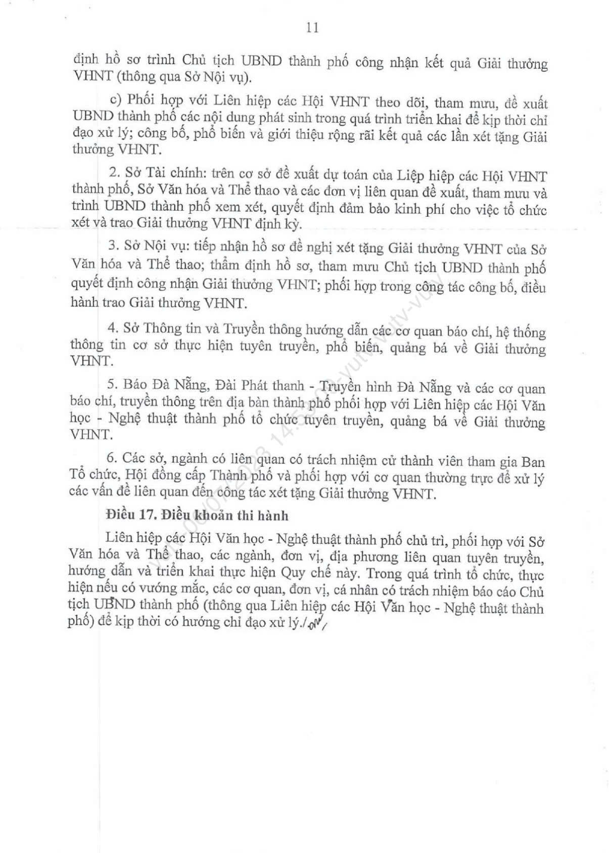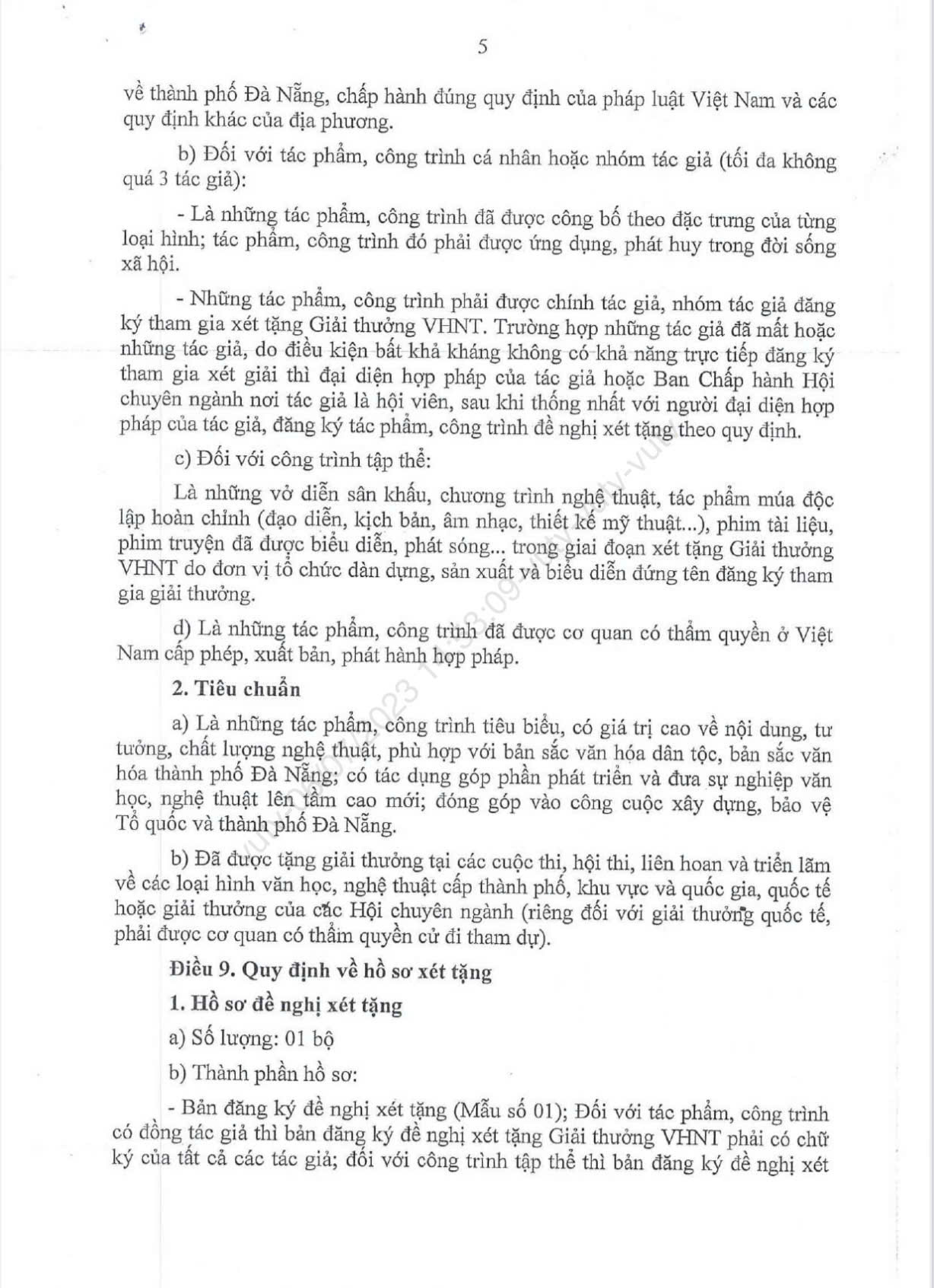 Quy chế xét tặng Giải thưởng Văn học - Nghệ thuật thành phố Đà Nẵng