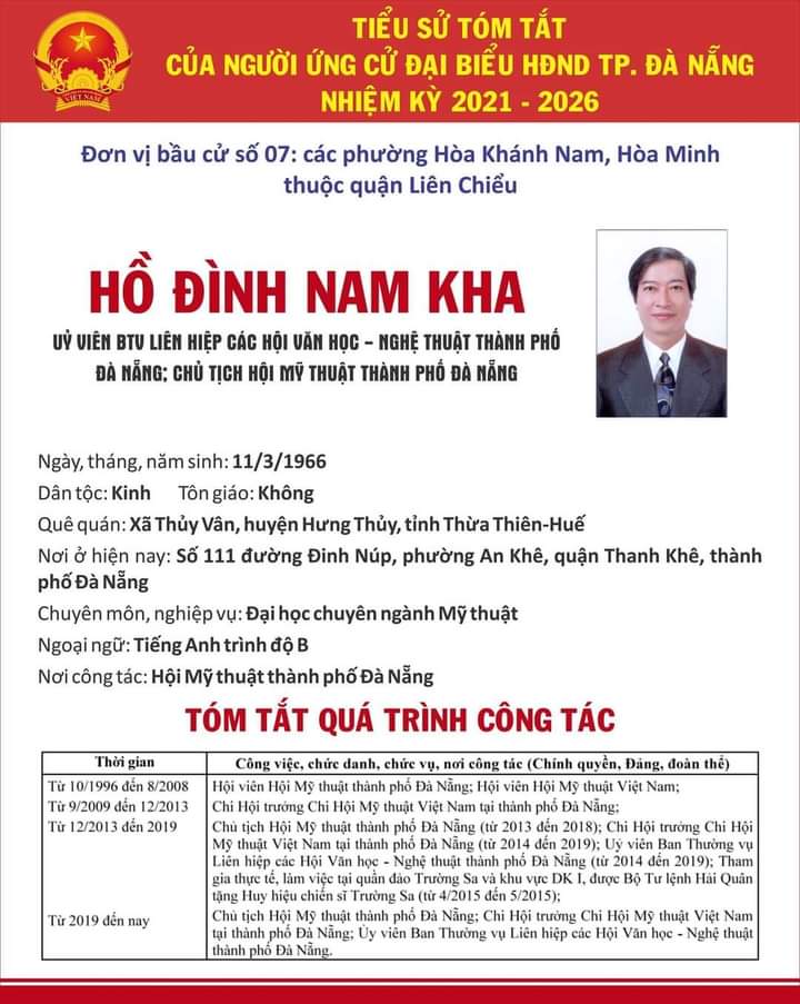 Hy vọng 6 đại biểu đang sinh hoạt tại các Hội nghệ thuật Múa, Hội Âm nhạc, Hội Mỹ thuật, Hội Kiến trúc sư của thành phố, dù làm việc ở các đơn vị khác nhau, sẽ được cử tri tín nhiệm và tương lai có nhiều đóng góp trong công cuộc xây dựng và phát triển thành phố Đà Nẵng xinh đẹp của chúng ta.