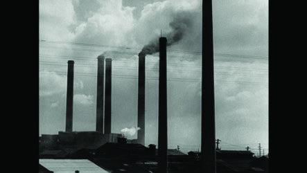 Sang tới phim của Ozu, chúng tôi cho rằng, bố cục này đã được ông vận dụng, tiếp biến thành hình ảnh những chiếc ống khói dựng đứng, chọc thẳng lên trời, miệng nhả đầy khói. Những chiếc ống khói choán toàn bộ khung hình, tồn tại như một thực thể đầy đe dọa. Những “thân cây bằng sắt” ấy xuất hiện trong cả ba bộ phim Câu chuyện Tokyo, Chào buổi sáng và Một chiều thu, nói cách khác, đây là hình ảnh xuất hiện xuyên suốt các phim của ông. Chúng không còn mang lại cảm giác dễ chịu, nhẹ nhàng và hài hòa với không gian xung quanh; mà giờ đây, chúng đem tới sự sợ hãi, ngột ngạt, dự cảm về những điều không lành mà máy móc của thời hiện đại mang tới. Bên cạnh hình ảnh ống khói, bố cục thẳng đứng trong Ukiyo-e còn như chuyển hóa thành dáng hình của những tòa nhà, cột trụ bê tông trơ cứng, lạnh ngắt trong phim của Ozu. Những hình ảnh này cũng không còn mang lại sự hài hòa mà trở thành các khối trụ, song chắn xẻ dọc khung hình, tạo cảm giác ngăn cách.