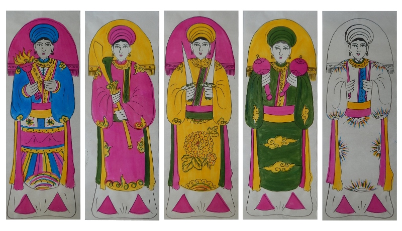 Nộm trình đồng (ngũ sắc) - tranh dân gian vẽ tay Huế - nghệ nhân Cao Văn Thiền.