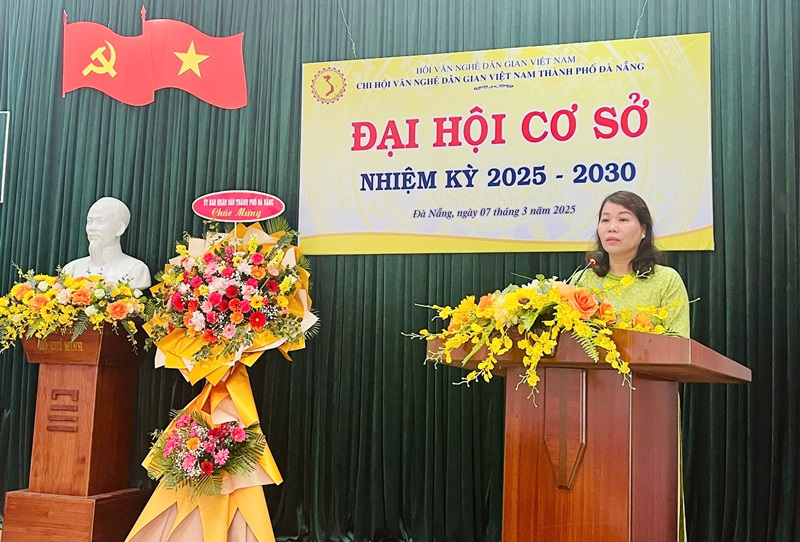 Phát biểu tại Đại hội, bà Mai Thị Thu - Phó Ban Tuyên giáo và Dân vận Thành ủy ghi nhận và biểu dương những thành tựu mà Chi hội VNDGVN thành phố Đà Nẵng đã đạt được trong nhiệm kỳ qua, nhất là trong công tác bảo tồn và phát huy vốn văn hóa văn nghệ dân gian tại thành phố Đà Nẵng. Trong nhiệm kỳ mới, Ban Tuyên giáo Thành ủy sẽ tạo điều kiện để các nhà nghiên cứu có thể tham gia vào nhiều đề tài nghiên cứu lớn của thành phố để phát huy được năng lực và góp phần vào xây dựng thành phố Đà Nẵng là thành phố đáng sống và đáng đến.