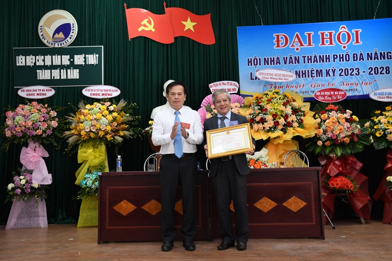 Thừa lệnh Chủ tịch Ủy ban Nhân dân thành phố Đà Nẵng, Ông Nguyễn Hoài Nam - Phó Trưởng Ban Tuyên giáo Thành ủy tặng Bằng khen cho Hội nhà văn thành phố vì đã có thành tích xuất sắc trong nhiệm kỳ 2018-2023.