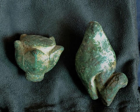 Hình 3: Hai vật cầm tay của Tara là hoa sen và con ốc, bị gãy từ khi mới phát hiện. Hiện được bảo quản tại Bảo tàng tỉnh Quảng Nam, thành phố Tam Kỳ. Ảnh Nguyễn Anh Tuấn.