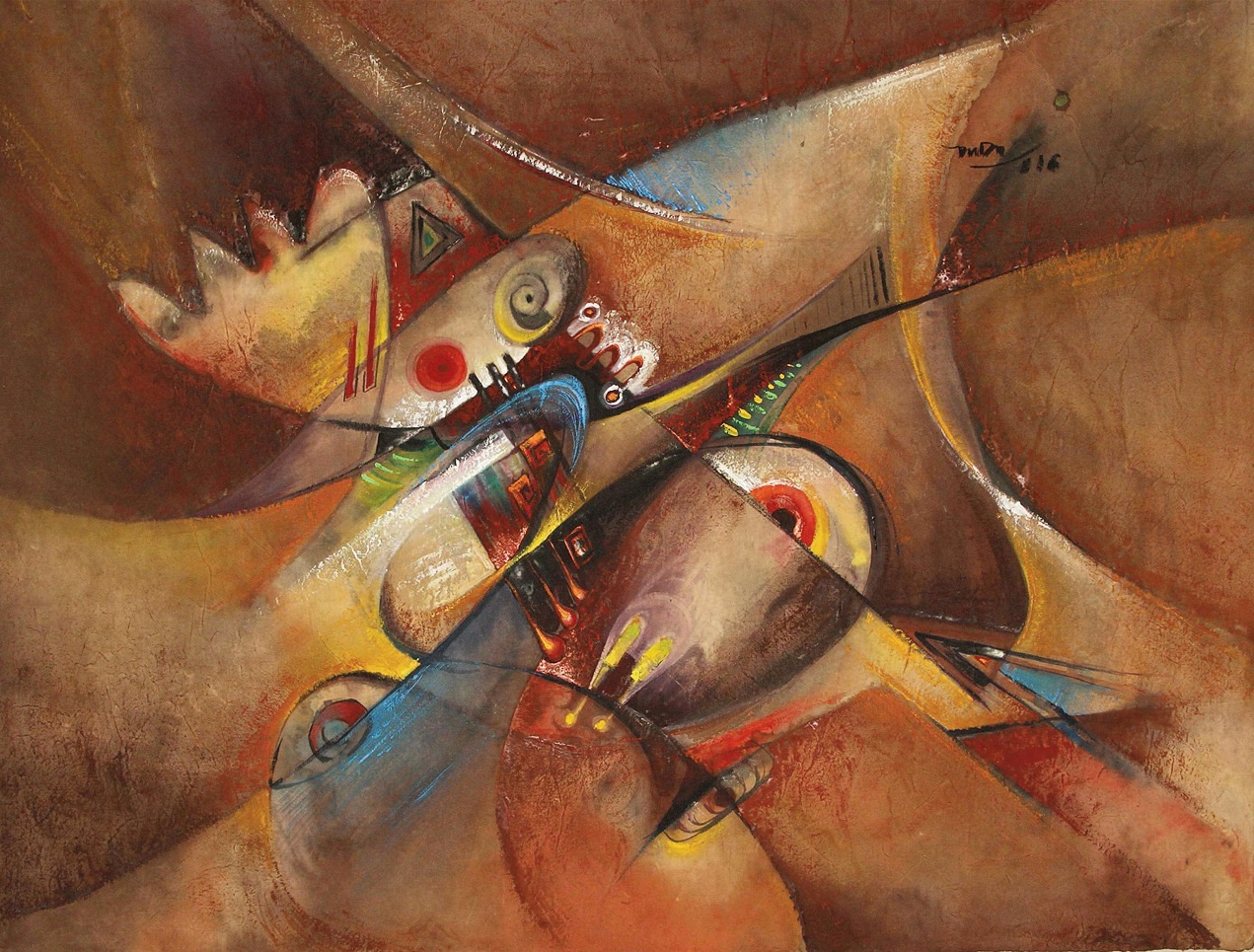 Cùng với tranh sơn dầu, lụa thì giấy dó là chất liệu đặc trưng của hội họa Việt Nam. Là chất liệu có sức hấp dẫn, lôi cuốn, giàu tính biểu đạt và luôn tạo cảm hứng sáng tạo bởi nét nhẹ nhàng, tinh tế riêng có. Tác phẩm Vũ trụ được tác giả thể hiện những khía cạnh về cuộc sống, gợi lên những chiều sâu ký ức bị lãng quên theo thời gian. Bên cạnh đó, tác phẩm còn tái hiện những suy tư trăn trở về cuộc sống đan xen trong đó là tâm thức luôn khao khát sáng tạo, tìm kiếm cái mới.