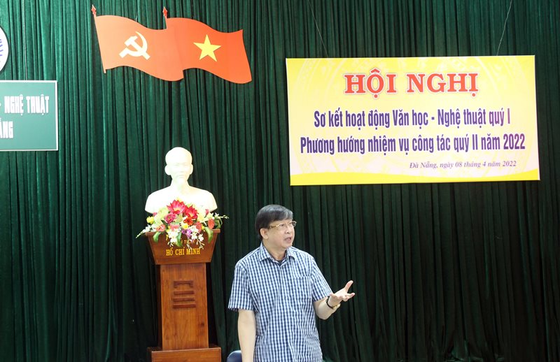 Thay mặt Ban Thường vụ Liên hiệp các Hội Văn học - Nghệ thuật Đà Nẵng, nhà thơ Nguyễn Nho Khiêm - Phó Chủ tịch Liên hiệp Hội báo cáo tình hình hoạt động quý I/2022, triển khai một số nhiệm vụ trọng tâm quý II.