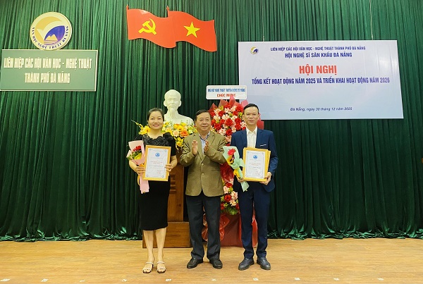Hội nghị cũng đã biểu dương, khen thưởng các hội viên có thành tích tiêu biểu trong năm 2025, ghi nhận những đóng góp tích cực của cá nhân trong công tác sáng tác, dàn dựng, biểu diễn và truyền dạy nghệ thuật sân khấu. Đây không chỉ là sự động viên kịp thời đối với đội ngũ nghệ sĩ mà còn thể hiện sự trân trọng của Hội đối với những nỗ lực bền bỉ, tâm huyết của hội viên, góp phần nâng cao chất lượng hoạt động sân khấu và đời sống văn hóa nghệ thuật của thành phố Đà Nẵng.