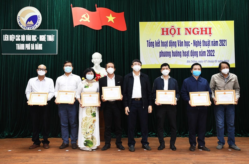 Tại hội nghị này, Liên hiệp các Hội Văn học - Nghệ thuật Đà Nẵng đã trao Giải thưởng văn học nghệ thuật của Liên hiệp Hội cho 06 tác phẩm thuộc 6 loại hình Âm nhạc, Múa, Sân khấu, Điện ảnh, Nhiếp ảnh, Mỹ thuật tiêu biểu trong năm 2021 theo đề xuất của các Hội chuyên ngành gồm: ca khúc Ước mơ Việt Nam của nhạc sĩ Lê Nam An; Kịch bản múa Dáng xuân của tác giả Phạm Thị Kiều Như; Kịch bản tuồng Nàng Tấm của đạo diễn Phan Văn Quang, kịch bản Phạm Sĩ Chức; Ảnh nghệ thuật Chốt bảo vệ biên giới phòng chống Covid-19 của NSNA Huỳnh Văn Truyền; Tác phẩm điêu khắc Tiếp nối của tác giả Nguyễn Quang; Phim tài liệu Đà Nẵng - Nhìn lại để đi tới của nhóm tác giả: Nguyễn Lâm Thanh, Trương Vũ Quỳnh, Hoàng Tùng, Đoàn Hồng Lê, Đặng Tiến Nhựt; trao Bằng khen của Liên hiệp Hội cho 8 tập thể hoàn thành tốt nhiệm vụ, 7 văn nghệ sĩ đạt danh hiệu “Lao động tiên tiến” năm 2021.