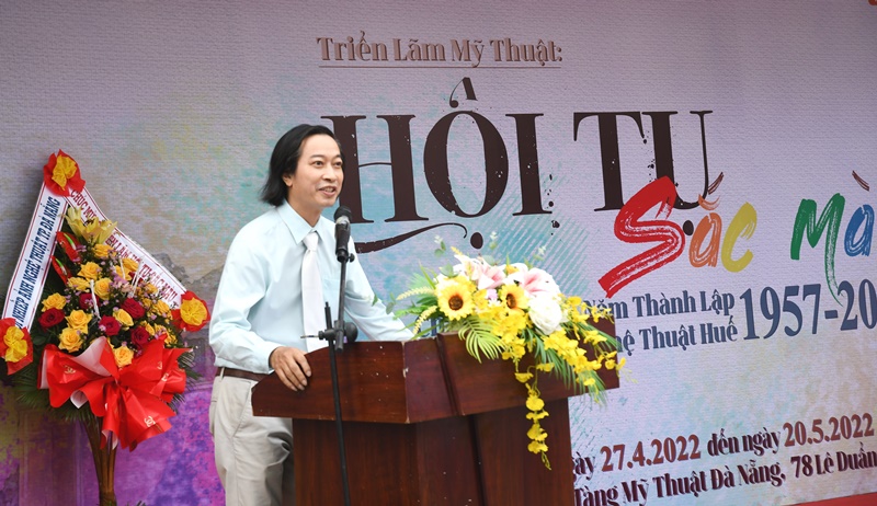 Phát biểu tại sự kiện, Hoạ sỹ Hồ Đình Nam Kha - Chủ tịch Hội Mỹ thuật TP Đà Nẵng, chia sẻ: 65 năm là một hành trình dài của trường Đại học Mỹ thuật Huế - Mái trường thân yêu, là cái nôi nuôi dưỡng nhiều thế hệ sinh viên mỹ thuật trưởng thành, hiện là những hoạ sỹ, nhà diêu khắc thành danh trên mọi miền đất nước. Triển lãm Hội tụ sắc màu là sự kiện đáng trân quý, tạo điều kiện để nhiều thế hệ cựu sinh viên trường Đại học Nghệ thuật Huế sống và làm việc tại thành phố Đà Nẵng, Thừa Thiên Huế cùng nhau hội tụ để gặp gỡ, giao lưu, trao đổi kinh nghiệm, tạo cảm hứng sáng tạo mới. Những tác phẩm trưng bày tại triển lãm được các hoạ sỹ đầu tư nhiều tâm huyết, thể hiện tình cảm sâu đậm, cảm nhận sâu sắc của các tác giả. Thể hiện được trọng trách cao cả của người hoạ sỹ trong cách nhìn về cuộc sống, không ngừng đổi mới, sáng tạo để làm giàu thêm cho giá trị mỹ thuật”.