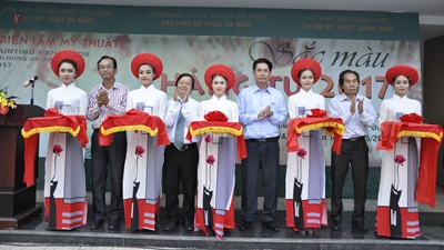 Hội Văn học - Nghệ thuật tỉnh Quảng Nam cắt băng khai mạc triển lãm.