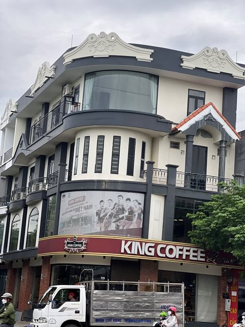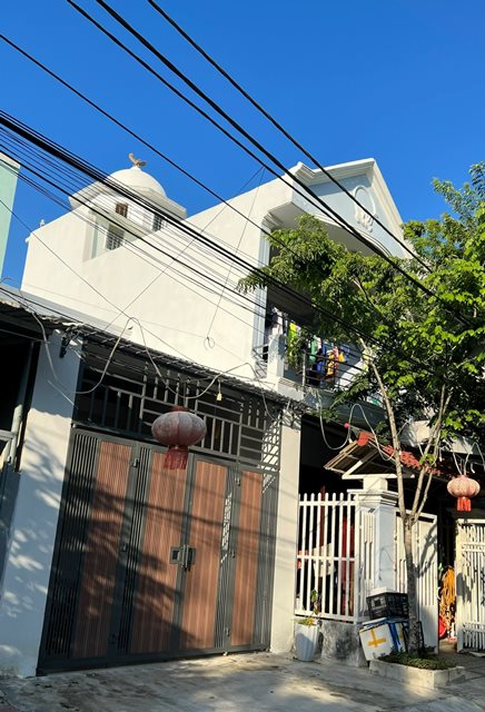 Hình 3 & 4: Một công trình trên đường Điện Biên Phủ Đà Nẵng (hình 3, bên trên) với hình thức kiến trúc được kết hợp khá tùy tiện giữa những mô típ trang trí phương Tây (đầu cột kiểu Tuscan; trang trí diềm mái với kiểu Baroque). Xa hơn đó khoảng 100m chúng ta có thể thấy sự ảnh hưởng của kiểu trang trí này hiện diện ở phần kết thúc mái trên của căn nhà chia lô (Hình 4, bên dưới). (Nguồn: hình chụp của tác giả).