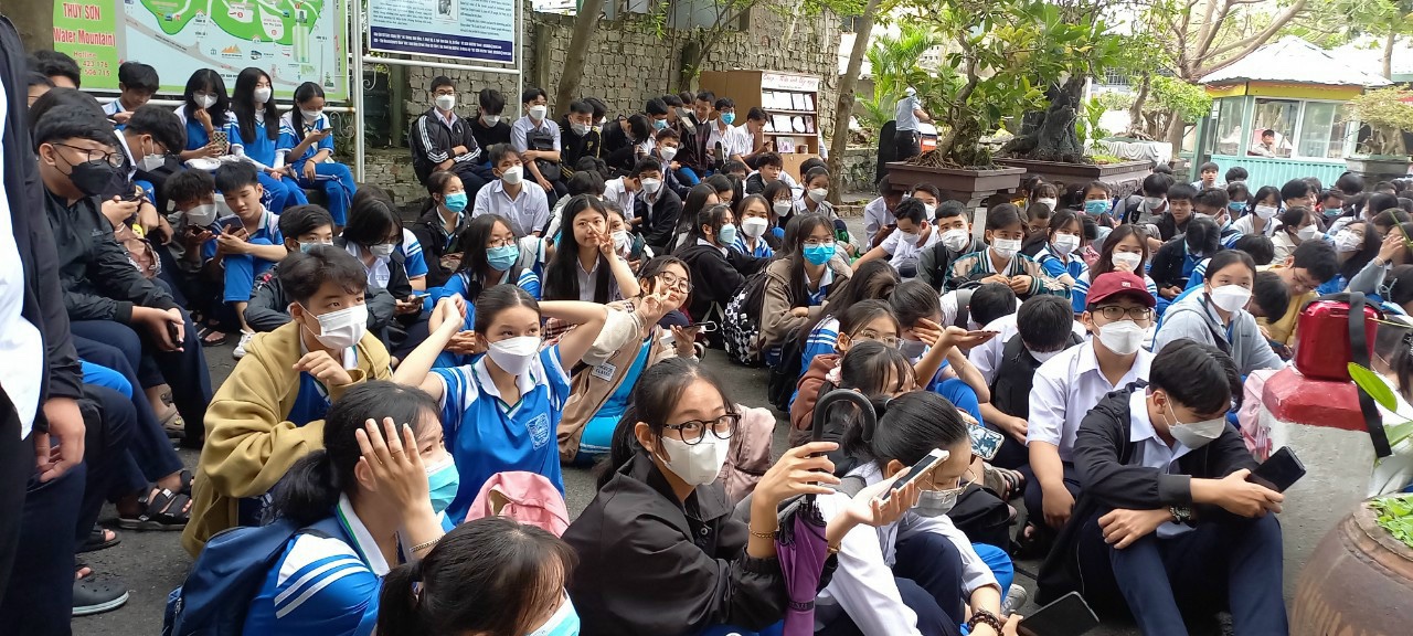 Học sinh trường THPT Ngũ Hành Sơn tham quan trải nghiệm tại danh thắng.