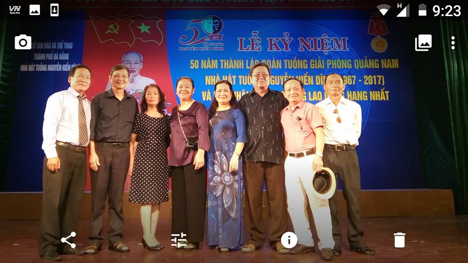 NSND Nguyễn Thị Thu Nhân (người đứng thứ 5 bên trái qua) tại Lễ Kỷ niệm 50 năm thành lập Đoàn Tuồng giải phóng Quảng Nam