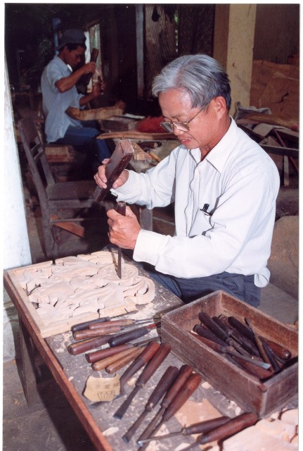 Tinh tế, chắt lọc từng chi tiết, mảnh ghép lịch sử văn hóa để tái hiện trên từng tác phẩm điêu khắc gỗ như một câu chuyện về lịch sử, chứa đựng ...