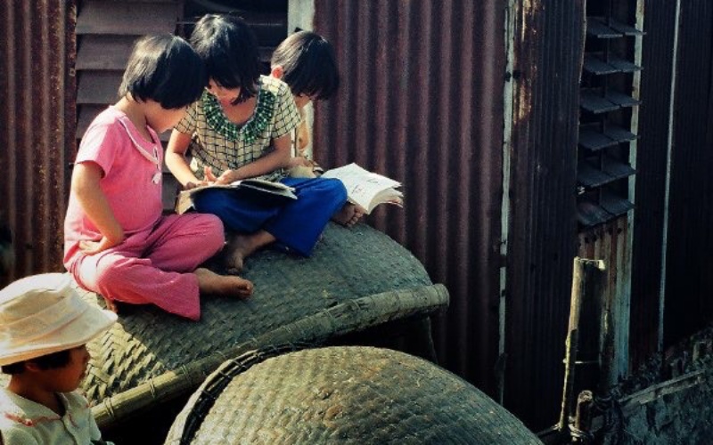 Góc học tập của các em khu nhà chồ Nại Hiên Đông, thập niên 1980. (Ảnh chụp: NSNA Ông Văn Sinh)