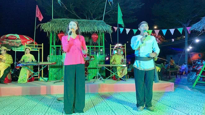 CLB bài chòi Sông Hàn biểu diễn tại sân khấu phía đông cầu Rồng.