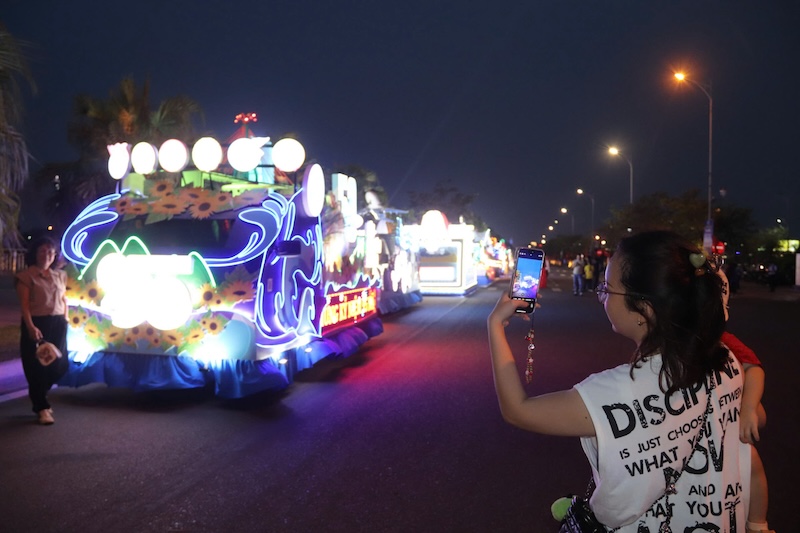 Các xe hoa diễu hành trên đường phố Bạch Đằng.
