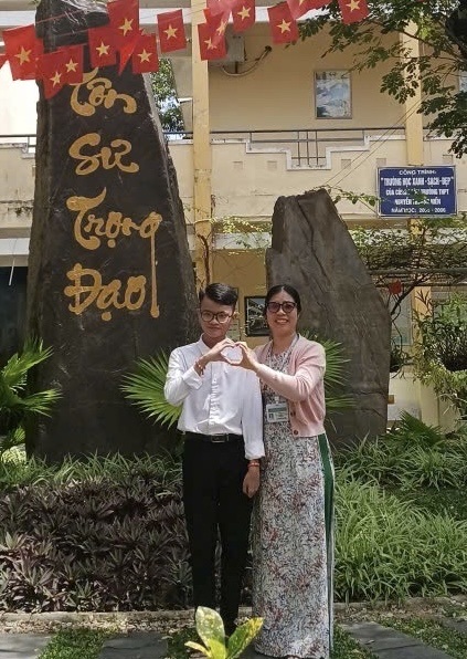 Em Đặng Văn và cô Phan Thị Hương Lài, giáo viên Trường THPT Nguyễn Thượng Hiền