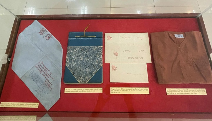 Những hiện vật như khăn tay, thiệp cưới, tấm áo,... của anh hùng Nguyễn Văn Trỗi.