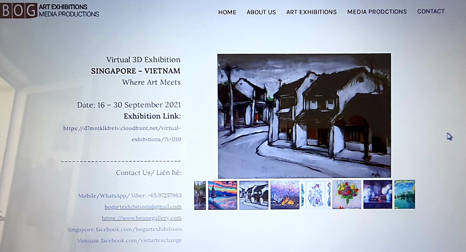 Triển lãm tranh “Singapore – Việt Nam nơi nghệ thuật gặp gỡ” là triển lãm nghệ thuật online trong không gian 3D. Triển lãm diễn ra từ ngày 16 đến 30 tháng 9 năm 2021, tại B.O.G Website & Facebook (Facebook: B.O.G Art Exhibitions, trang web: https://www.beonegallery.com).