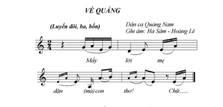 Ở phần tiếp theo này, hãy thử tìm hiểu về một số đặc trưng của âm luyến láy là thành phần chính của giai điệu qua một số bài bản dân ca xứ Quảng.