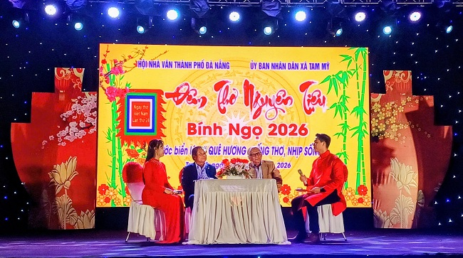 Nhà thơ Bùi Công Minh, Chủ tịch Liên hiệp các Hội Văn học - Nghệ thuật thành phố Đà Nẵng chủ trì buổi làm việc.