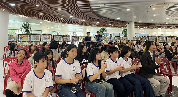 Phần workshop thực hành diễn ra sôi nổi và thu hút sự quan tâm của đông đảo người tham dự. Dưới sự hướng dẫn trực tiếp của các họa sĩ, giáo viên và học sinh được trải nghiệm trọn vẹn các công đoạn của kỹ thuật in dập bản tranh, từ khâu chuẩn bị vật liệu, tạo bản in đến hoàn thiện tác phẩm. Thông qua từng thao tác in dập, người tham gia không chỉ tiếp cận một kỹ thuật mỹ thuật truyền thống mà còn cảm nhận rõ nét sự tỉ mỉ, kiên nhẫn và tinh thần sáng tạo ẩn chứa trong mỗi đường nét. Nhiều tác phẩm ngẫu hứng đã được hoàn thành ngay tại chỗ, mang dấu ấn cá nhân rõ rệt, góp phần tạo nên không khí nghệ thuật cởi mở, truyền cảm hứng và gắn kết cộng đồng yêu mỹ thuật.