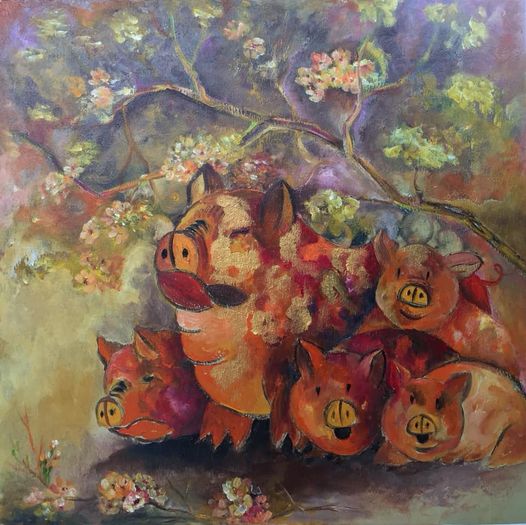 Đàn lợn, 60x60 cm, chất liệu acrylic.