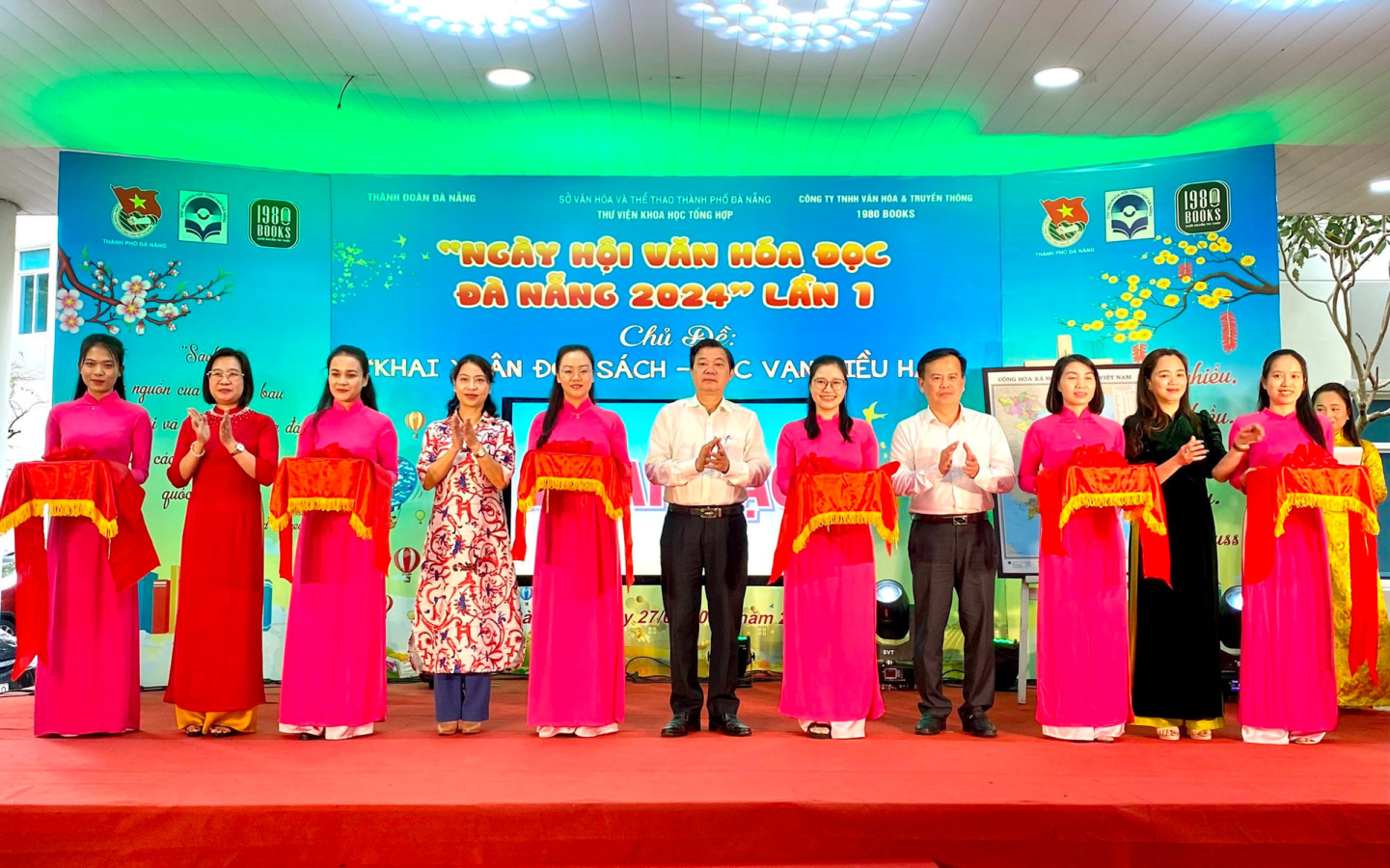 Đại biểu thực hiện nghi thức khai mạc sự kiện “Khai Xuân đọc sách - Học vạn điều hay”.