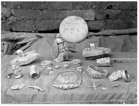 Bộ trang sức và linga bằng vàng và bạc được Carpeaux phát hiện tại tháp C7.