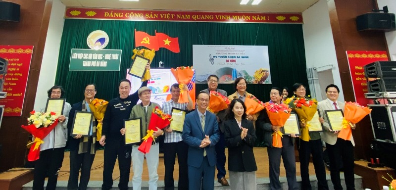 Tại Lễ ra mắt, Bà Nguyễn Thị Hội An - Phó Giám đốc Sở Văn hóa và Thể thao cùng nhà thơ Nguyễn Nho Khiêm - Chủ tịch Liên hiệp các Hội Văn học - Nghệ thuật thành phố Đà Nẵng trao giấy chứng nhận và hoa cho các tác giả tham gia MV ca khúc “Đà Nẵng - Thành phố tôi yêu”.